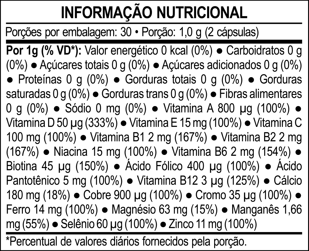 Não. Sua fórmula é composta por vitaminas e minerais em doses seguras e equilibradas. Em caso de dúvidas específicas, consulte seu médico ou nutricionista.